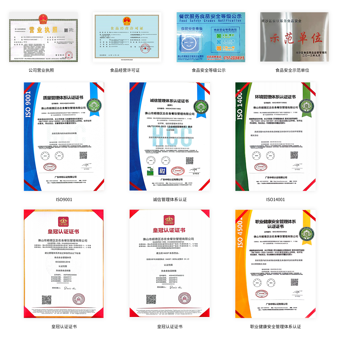 志(zhì)在食餐飲已通(tōng)過食品生(shēng)産經營相(xiàng)關的(de)資質認證,确保在食品規範和(hé)食品安全方面符合國(∞guó)家(jiā)政策和(hé)相(xiàng)關法律法規。